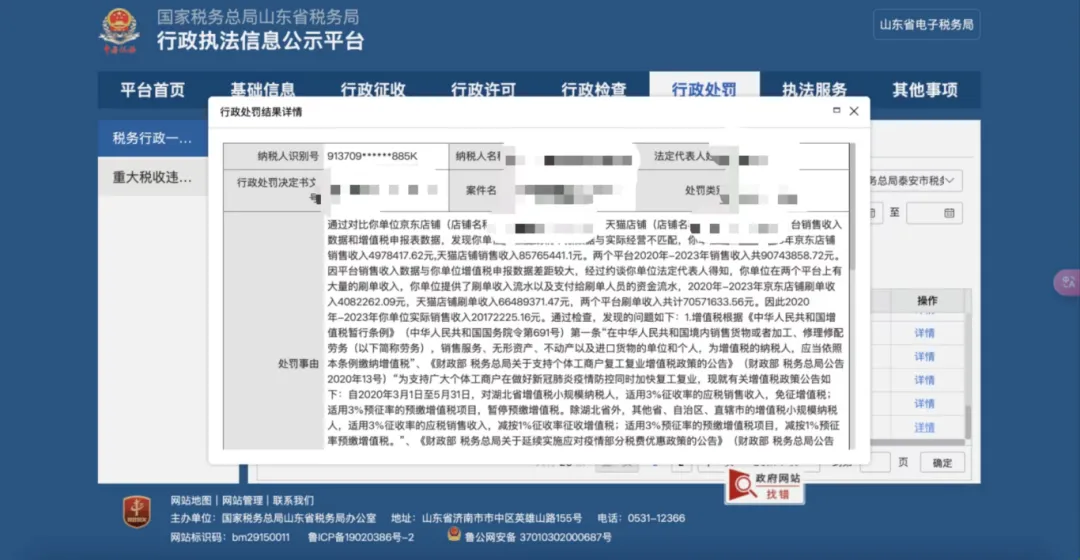 近日,山东省税务局发布一则处罚决定书,显示:税务机关通过对比该单位两家电商店铺的后台销售收入数据和增值税申报表数据,发现该单位增值税纳税申报数据与实际经营不匹配,且数据差距较大。经调查,发现两个平台刷单收入占销售收入的77.77%。因此2020年-2023年该单位实际销售收入两千余万元。最终该单位被认定为偷税,要求补缴增值税税款、城市维护建设税,并处以60%的罚款。