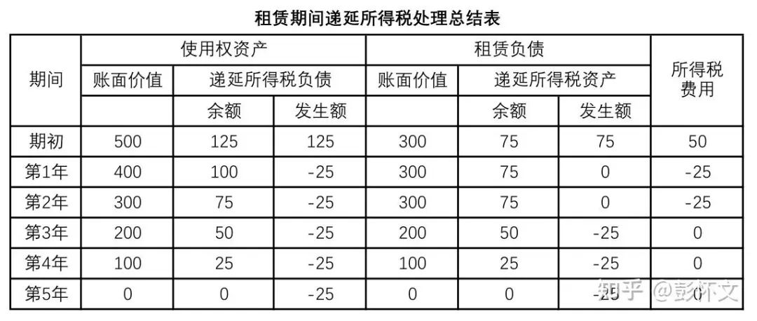 将租赁开始日和租赁期间确认与冲减“递延所得税资产/负债”的会计处理,总结如下表: