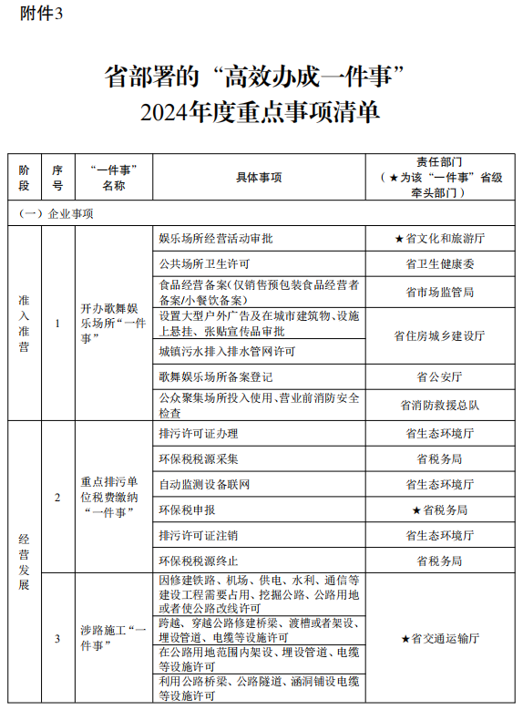 3.省部署的“高效办成一件事”2024年度重点事项清单