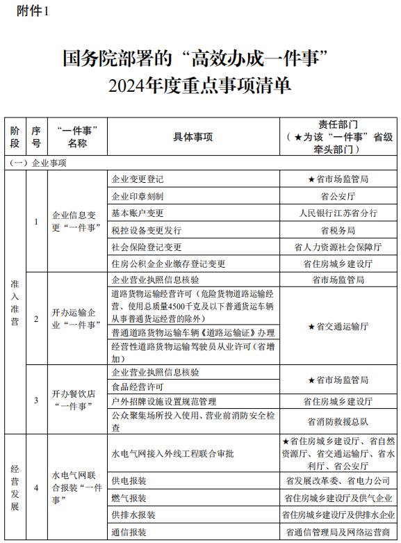 附件:1.国务院部署的“高效办成一件事”2024年度重点事项清单