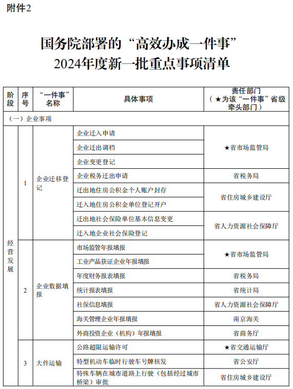 2.国务院部署的“高效办成一件事”2024年度新一批重点事项清单