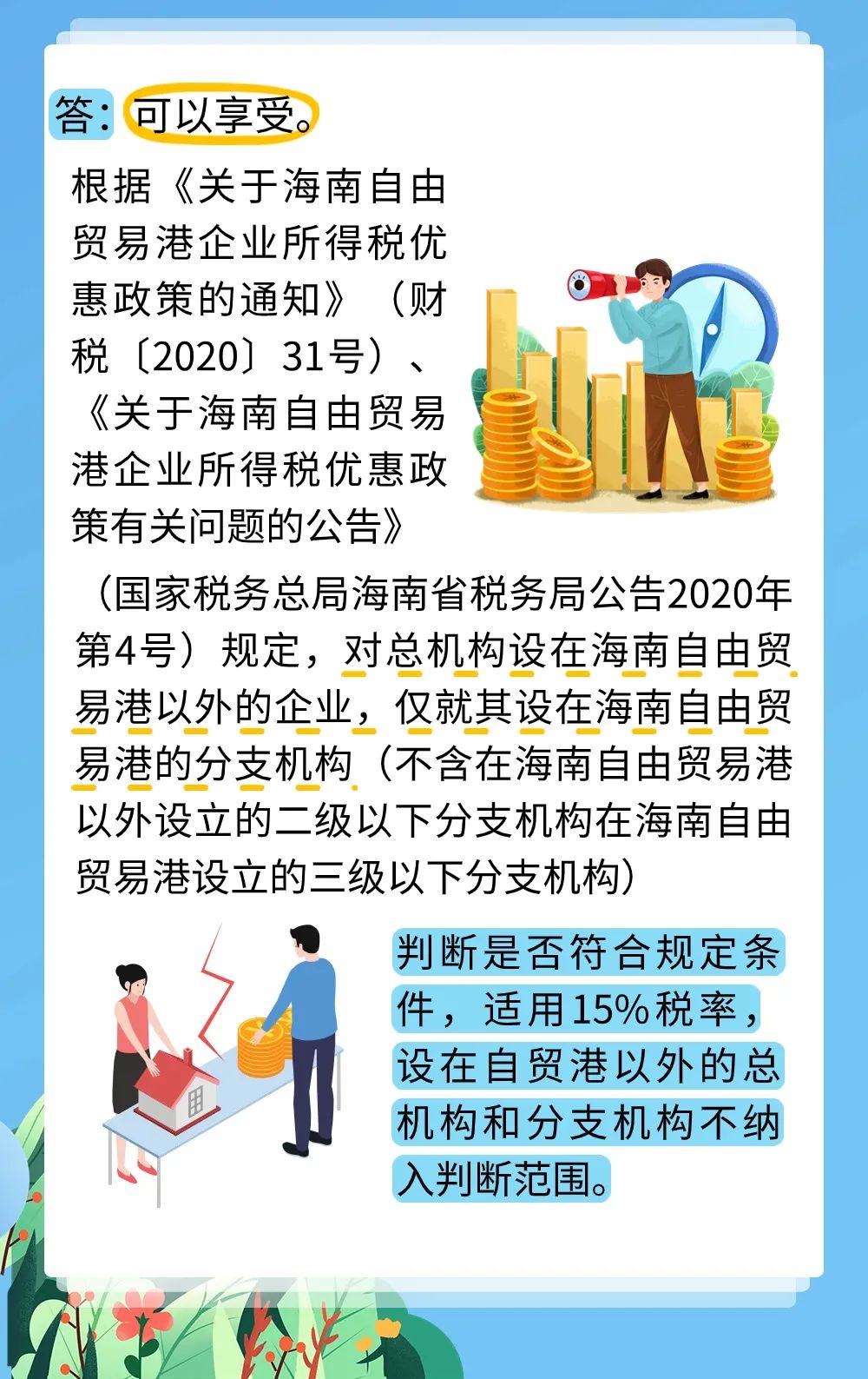 总公司设立在上海,分支机构设立在海南自由贸易港,分支机构是否能够单独享受海南自贸港企业所得税优惠政策?