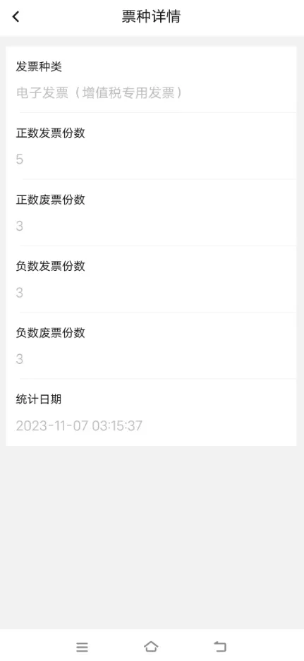 发票种类(领票)的“票种详情”界面查询结果显示如下。