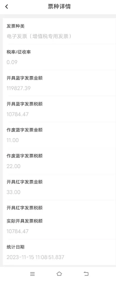 按税率/征收率的“票种详情”界面查询结果显示如下。