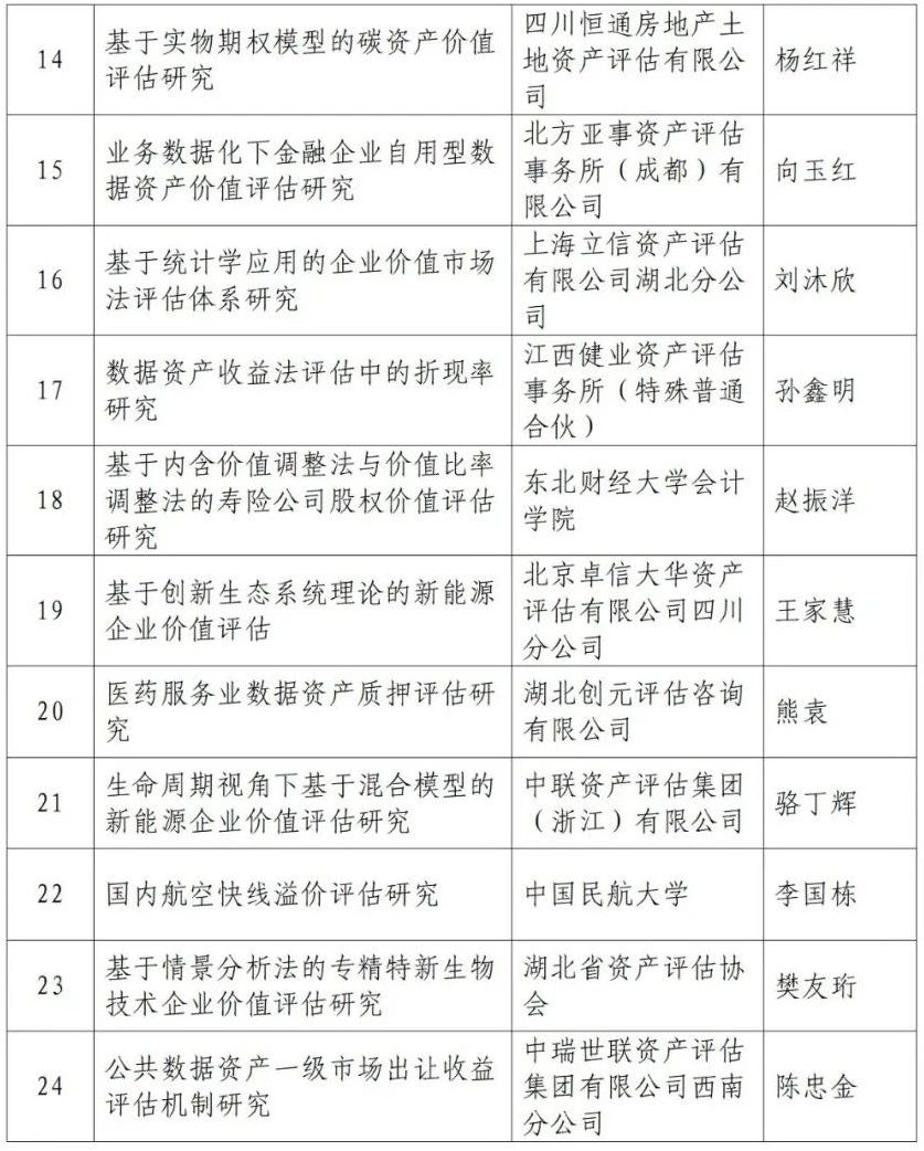 附件:2023—2024年资产评估行业青年研究项目评审结果