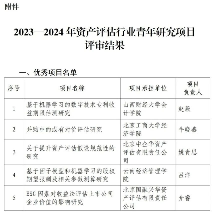 关于发布2023-2024年资产评估行业青年研究项目评审结果的公告