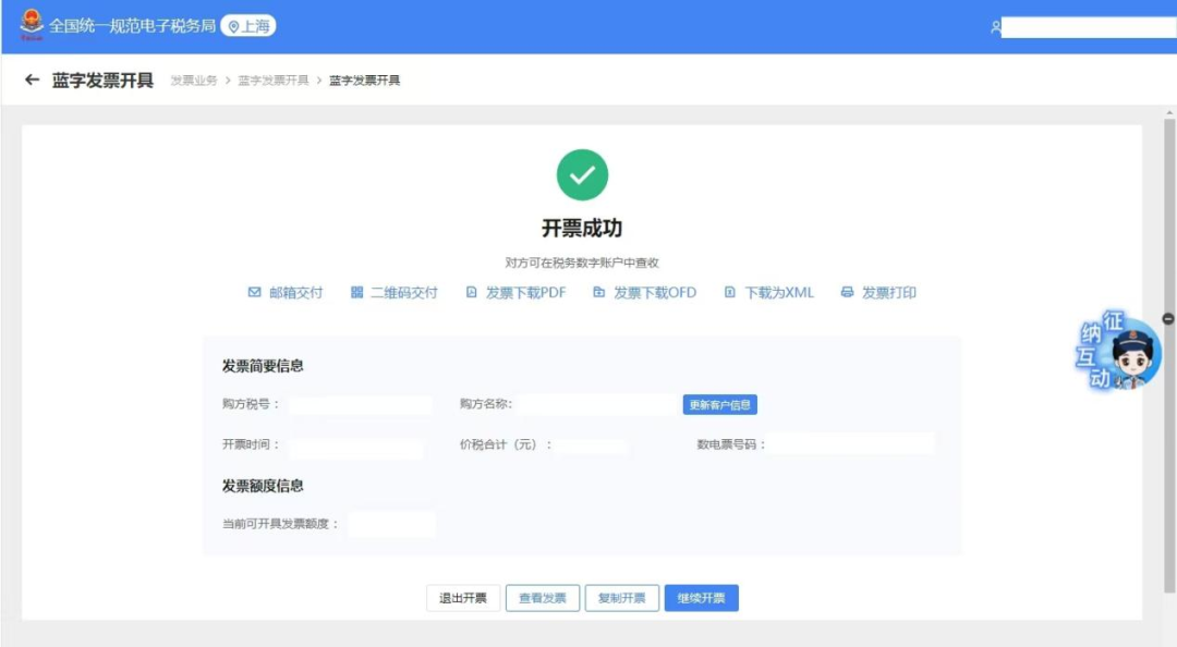 显示“开票成功”,即完成开票。