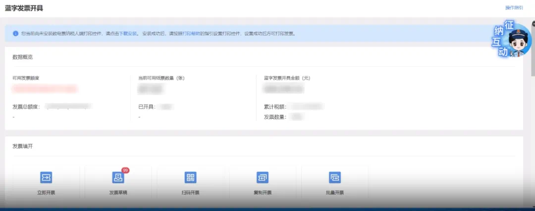 点击【蓝字发票开具】—【立即开票】。