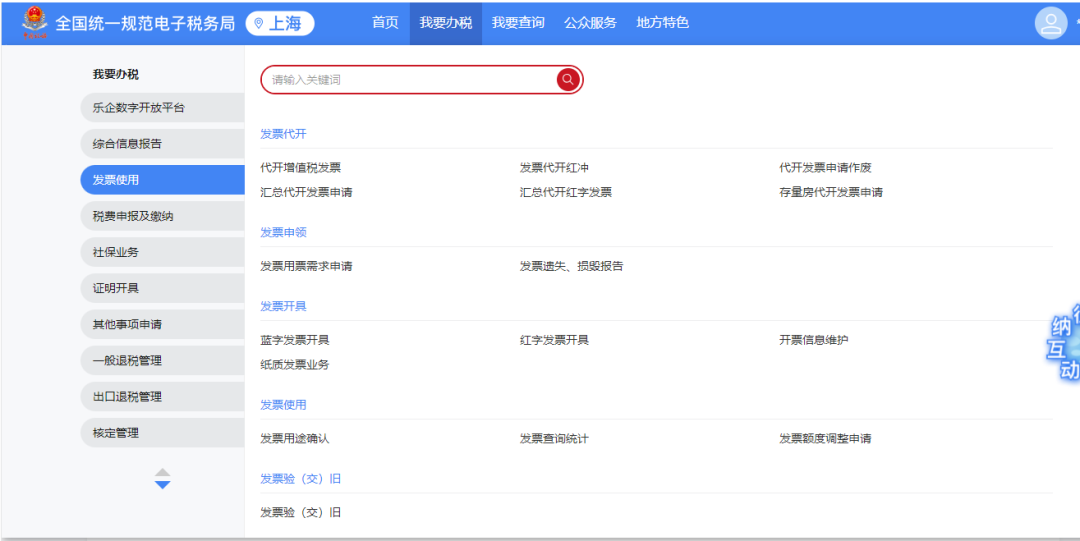 点击【我要办税】—【发票使用】。