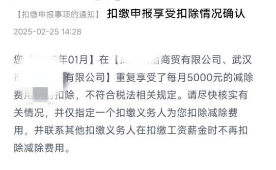 ?两处工资申报,预缴多扣5000,终于被预警了
