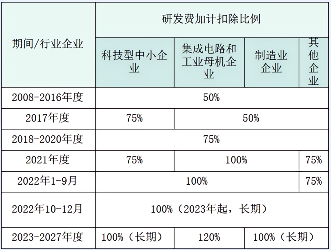 1、除集成电路和工业母机外,研发费用加计扣除比例统一为100%
