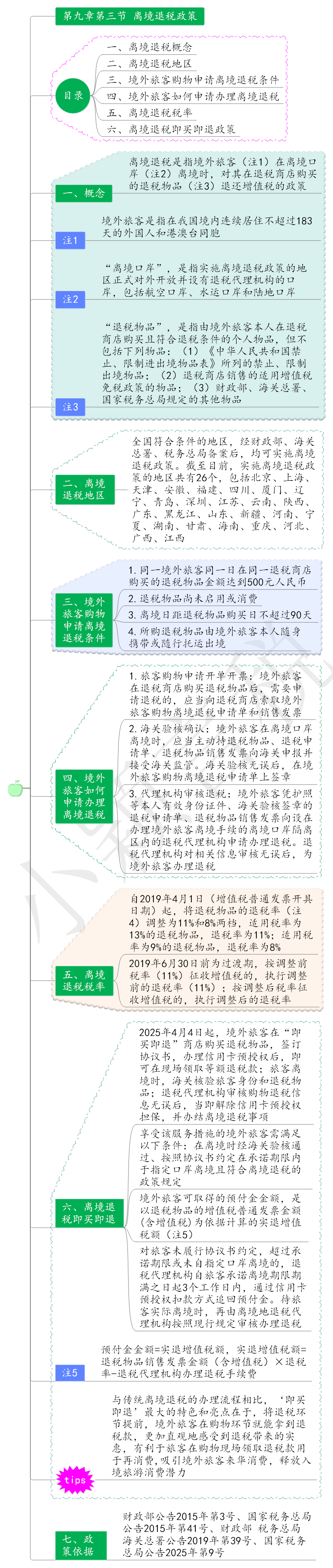 离境退税,是指境外旅客在离境口岸离境时,对其在退税商店购买的退税物品退还增值税。