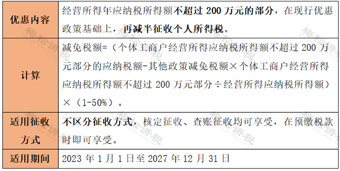 由省、自治区、直辖市人民政府根据本地区实际情况,以及宏观调控需要确定,对个体工商户可以在50%的税额幅度内减征资源税、城市维护建设税、房产税、城镇土地使用税、印花税(不含证券交易印花税)、耕地占用税和教育费附加、地方教育附加。个体工商户已依法享受资源税、城市维护建设税、房产税、城镇土地使用税、印花税、耕地占用税、教育费附加、地方教育附加其他优惠政策的,可叠加享受此项优惠政策。