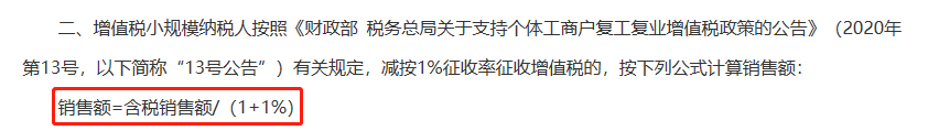 但是对于小规模纳税人3%减按1%征收这个政策来说,这个比对就会出现问题,因为开票就是直接按1%开具的发票,计算销售额也是按1%价税分离的,而不是先按3%价税分离,再减征。