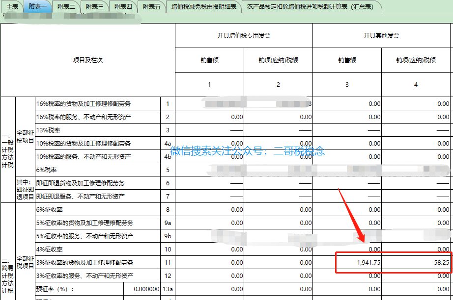 1、填写附表一,按照开具的金额和税额填写附表一,由于是增值税普通发票,填写到开具其他发票第11栏。
