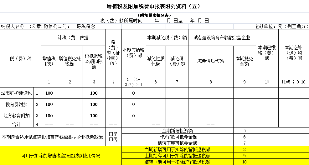 但是实操中,留抵抵欠这部分的金额如何在申报表操作去抵附加的基数,这个还是个问题,税务局是否认可这样操作,各地可能还有不同的看法,按目前的实操,大部分地区都没法这样操作。