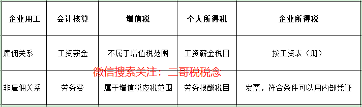 一个明确是劳动关系,企业按照工资薪金核算,一个明确是劳务关系,是独立劳务行为,企业按照劳务费核算。