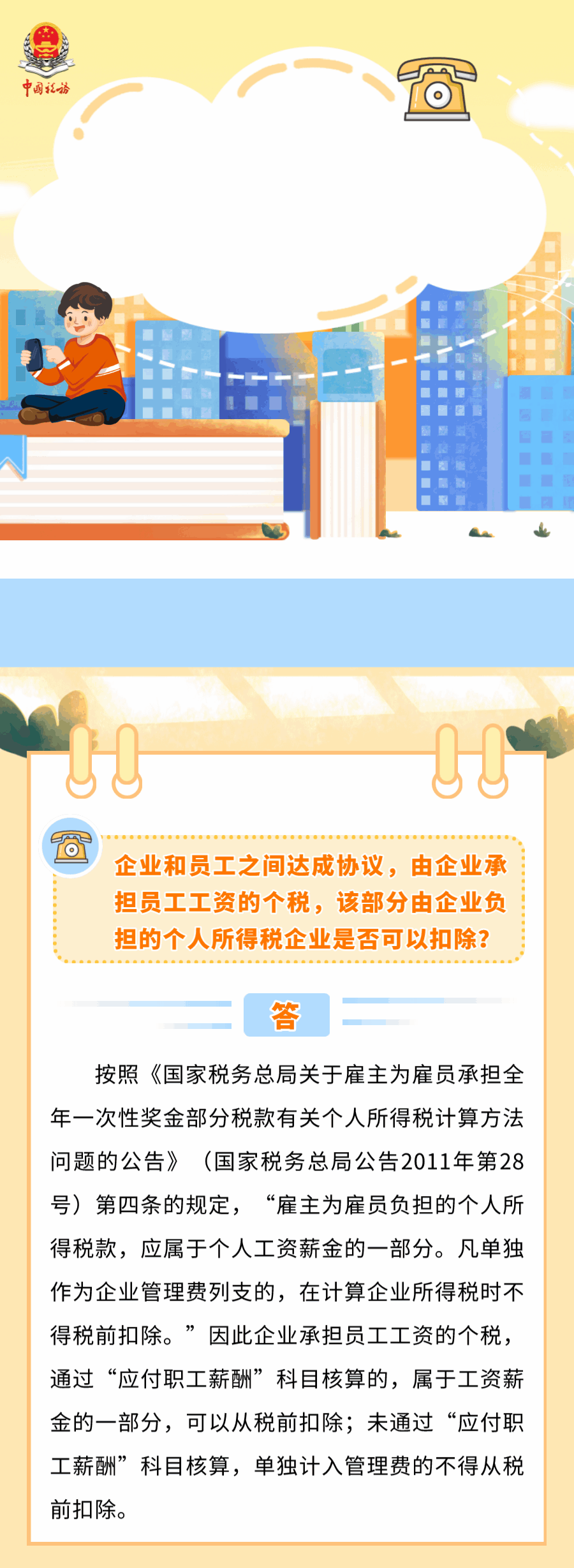 【税局解答】企业承担员工工资的个税是否可以扣除?