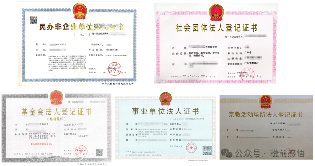 1)依规设立或登记的事业单位、社会团体、基金会、社会服务机构、宗教活动场所、宗教院校以及财政部、税务总局认定的其他非营利组织