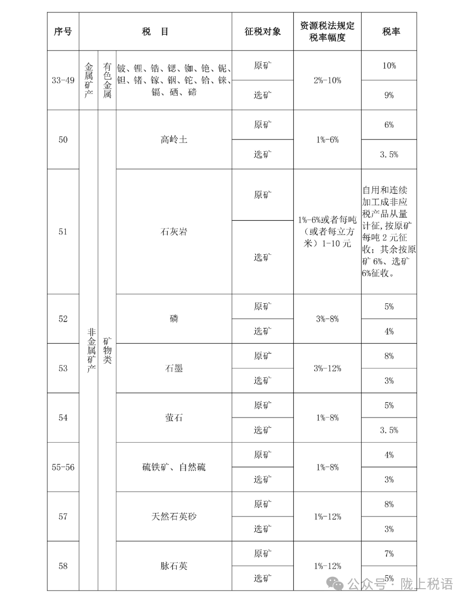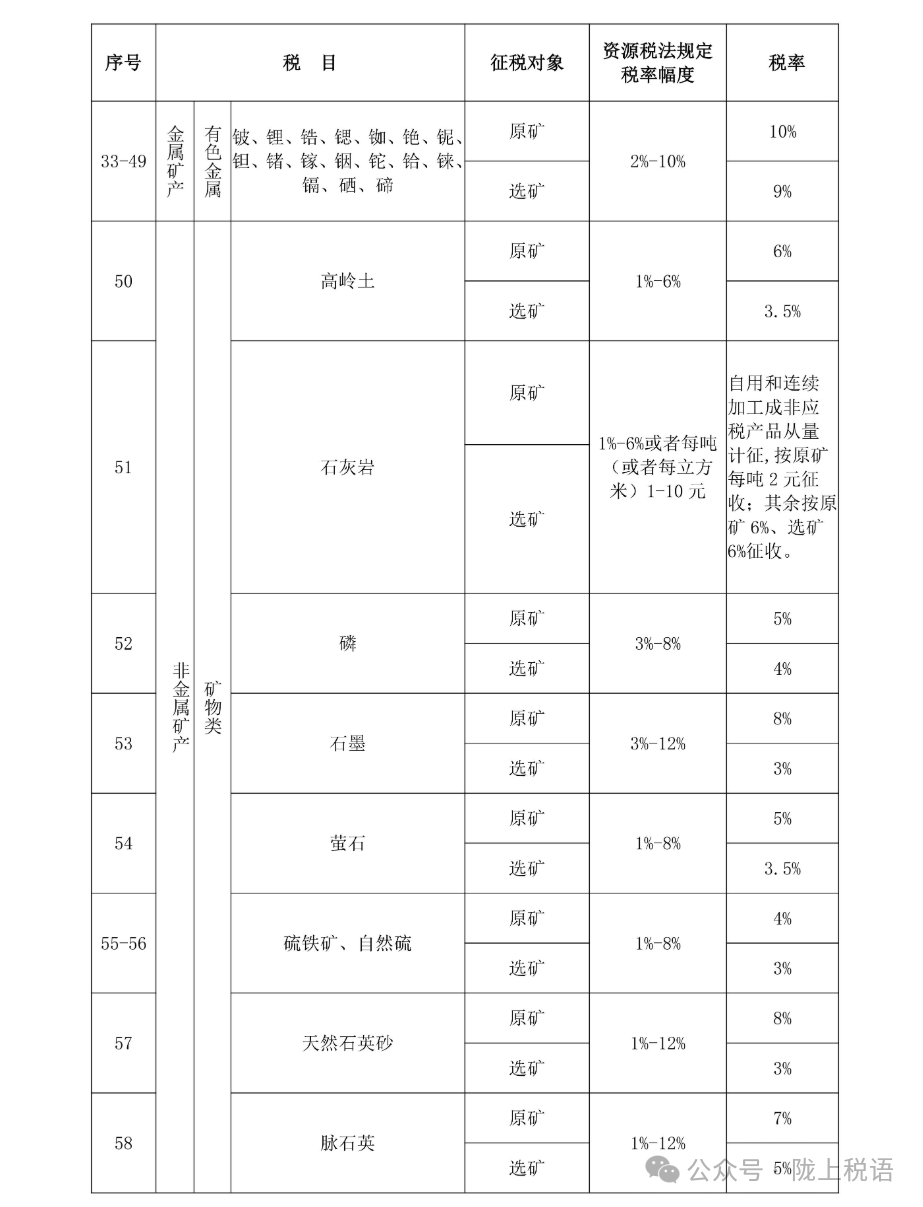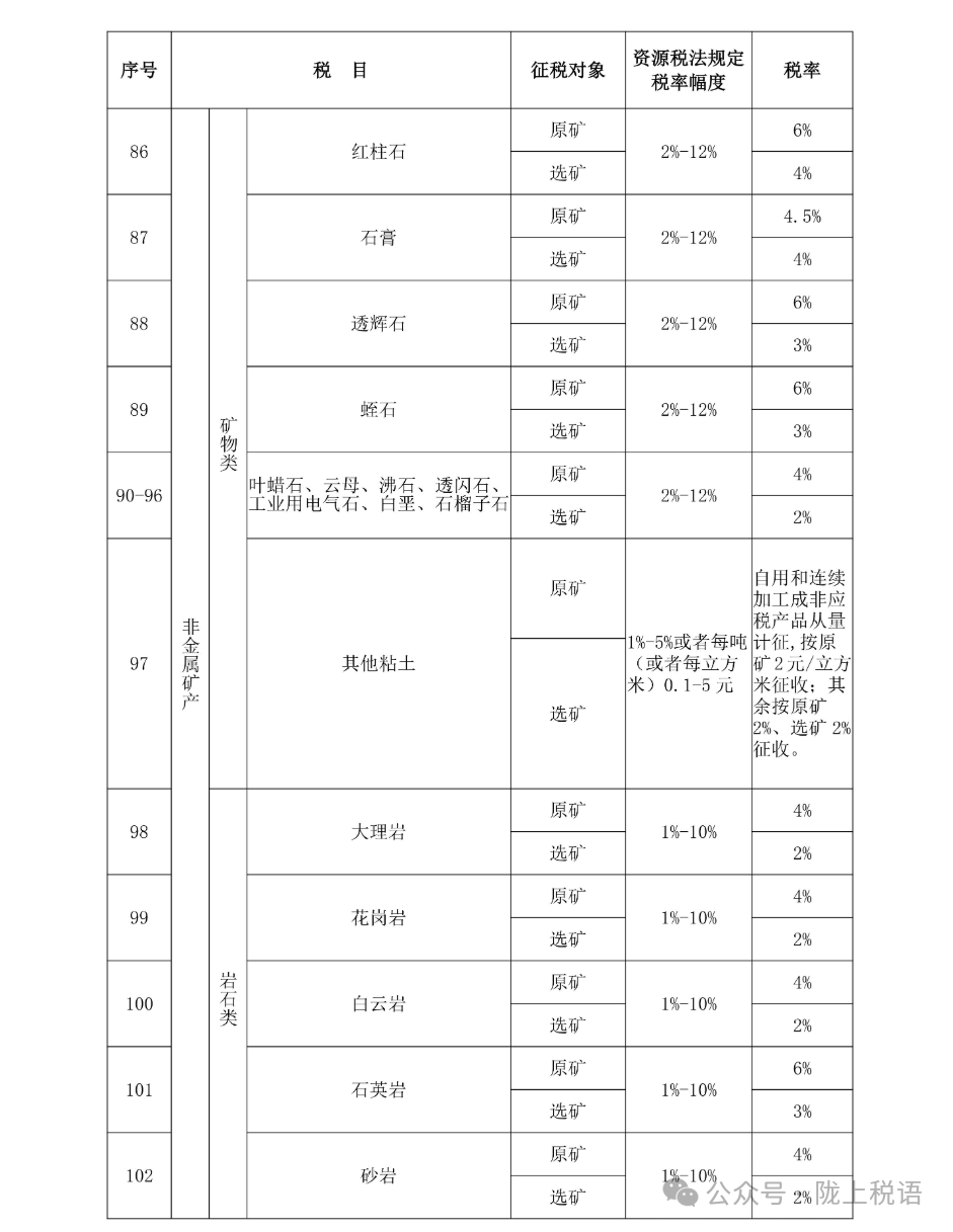 附:甘肃省资源税税目税率表