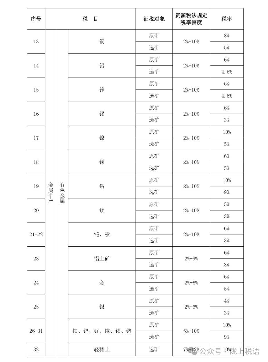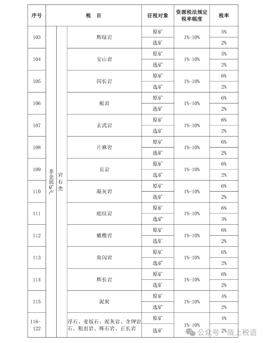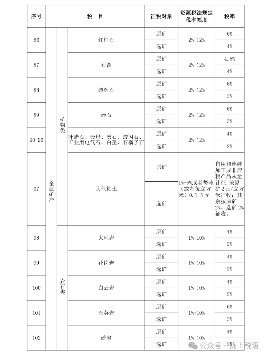 附:甘肃省资源税税目税率表