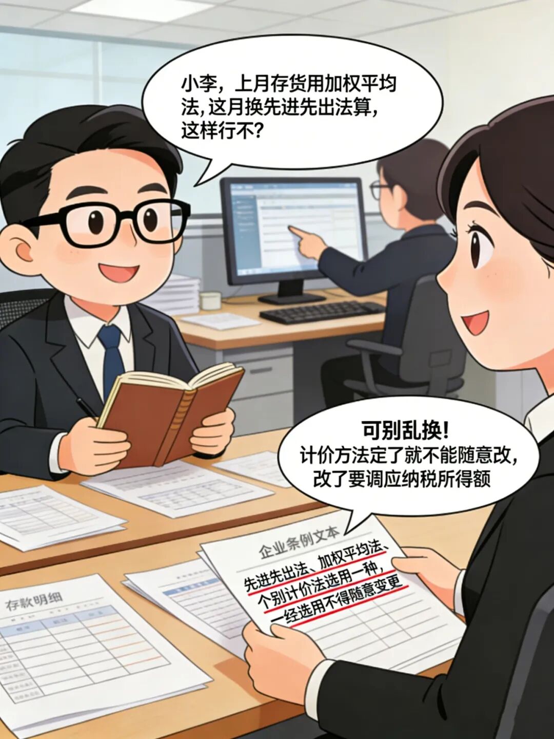 企业使用或者销售的存货的成本计算方法,可以在先进先出法、加权平均法、个别计价法中选用一种。计价方法一经选用,不得随意变更。如果企业随意变更存货计价方法,会影响当期应纳税所得额,需要做纳税调整。