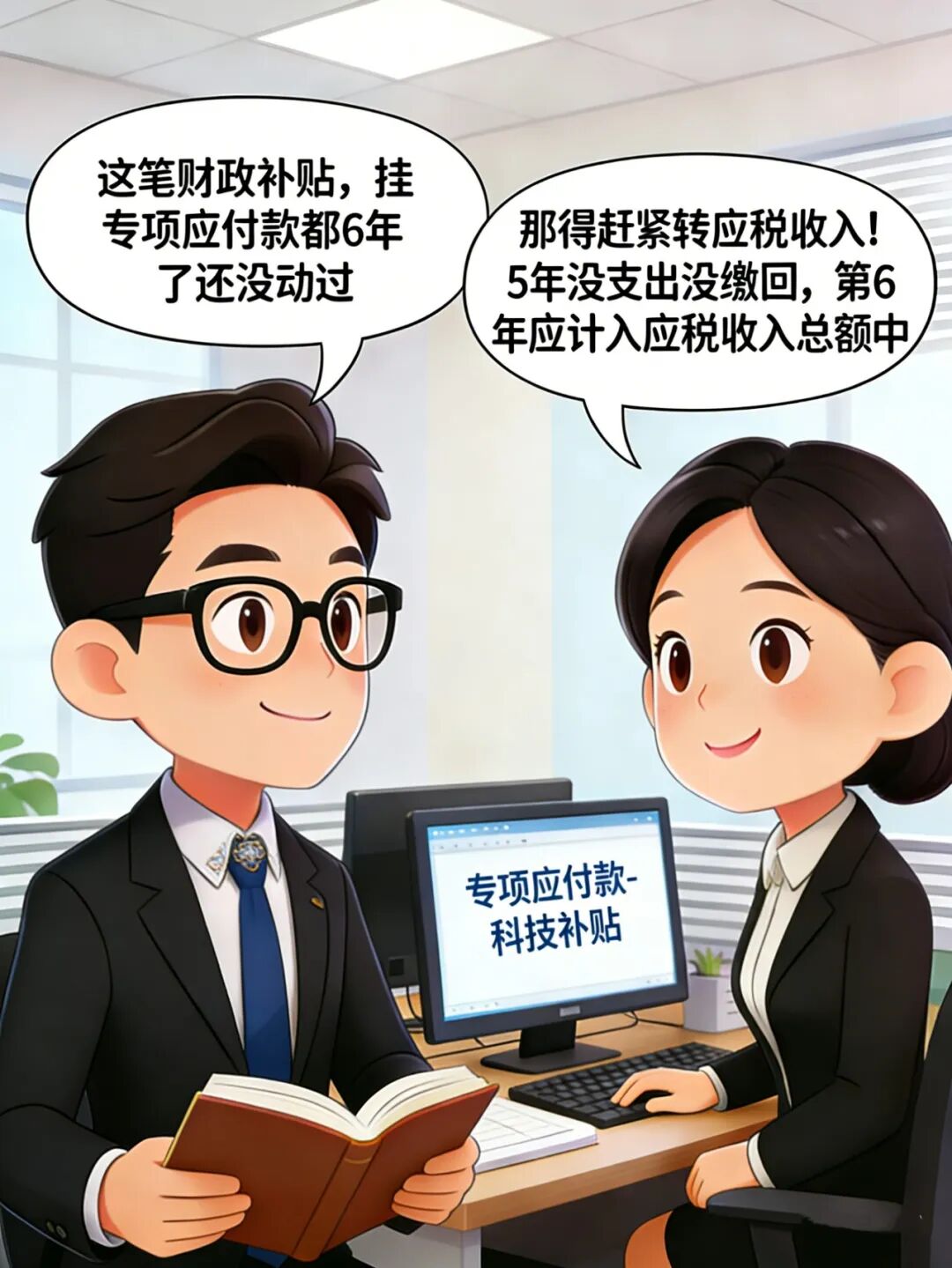 财政资金超过5年以上仍未支出或缴回财政,在第六年应计入应税收入总额中,目前很多单位仍然挂账专项应付款中,存在企业所得税风险。