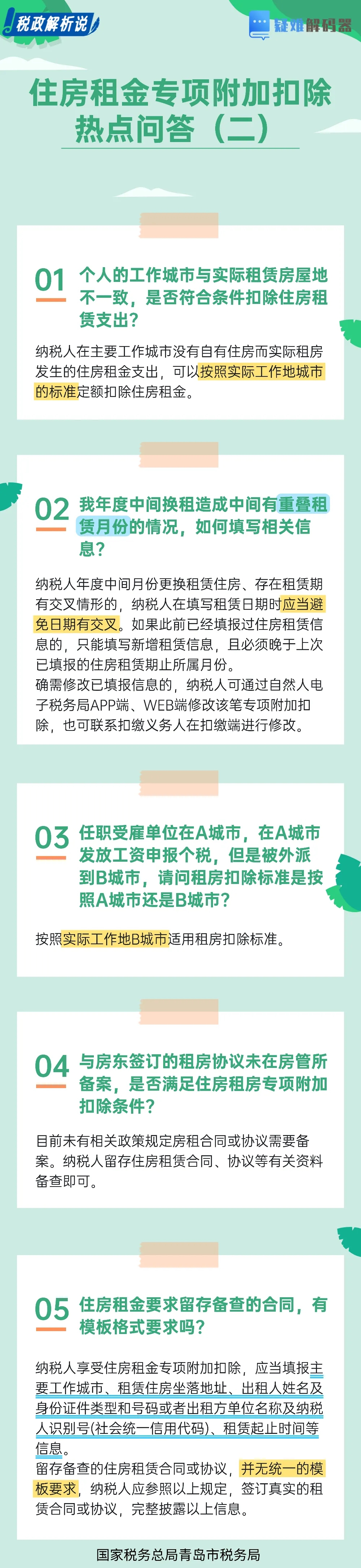 住房租金专项附加扣除热点问答(二)