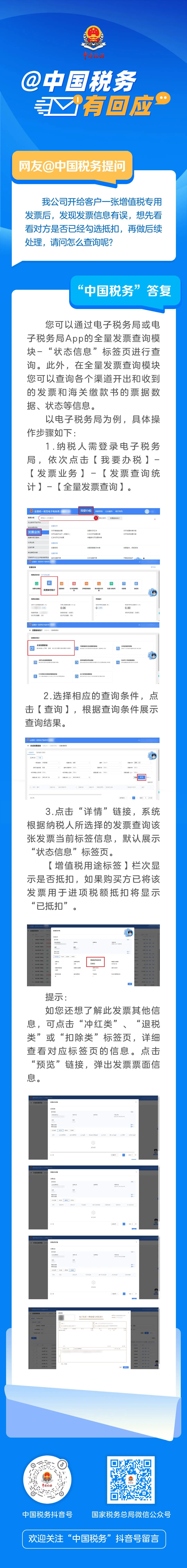@中国税务有回应丨开给客户的专票信息有误,如何查询对方是否已经勾选抵扣?