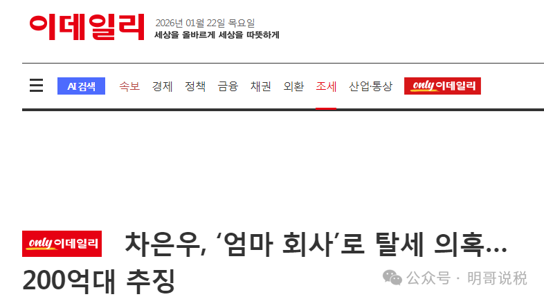 韩国国税厅认定A公司是一家"空壳公司",并未实际提供服务;并认为车银优及其母亲为了减少高达45%的个人所得税,设立一家并不存在的A公司,从而骗取比个人所得税税率低20多个百分点的企业所得税。