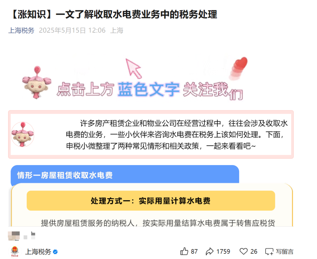 情形一房屋租赁收取水电费