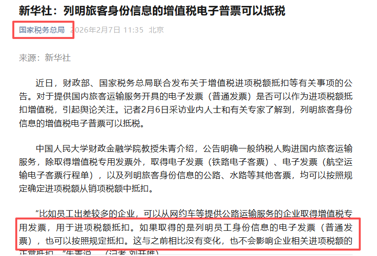 自2024年12月1日起,纳税人取得旅客运输发票需为全面数字化的电子发票,应注明出行人及有效身份证号等信息。