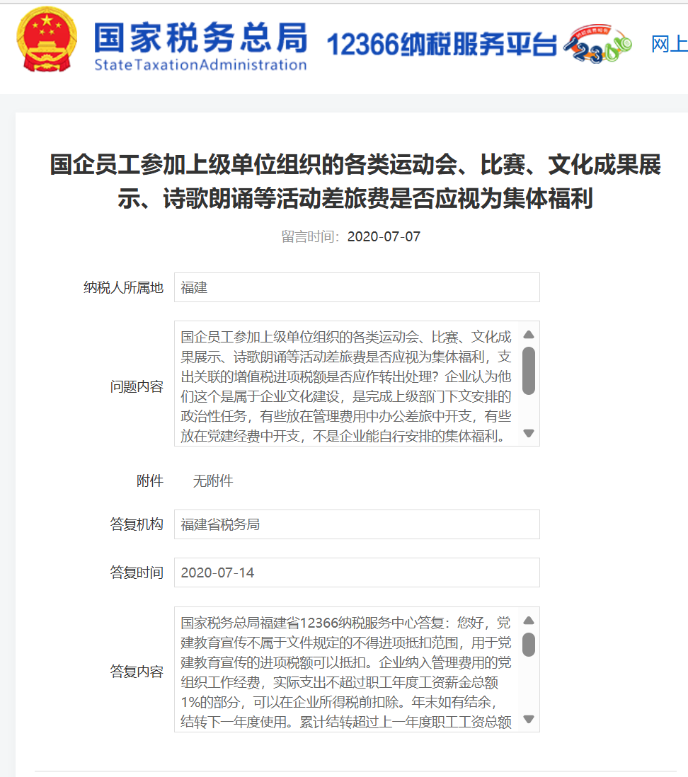 国企员工参加上级单位组织的各类运动会、比赛、文化成果展示、诗歌朗诵等活动差旅费是否应视为集体福利,支出关联的增值税进项税额是否应作转出处理?企业认为他们这个是属于企业文化建设,是完成上级部门下文安排的政治性任务,有些放在管理费用中办公差旅中开支,有些放在党建经费中开支,不是企业能自行安排的集体福利。应当是一种中国社会主义特色的行政管理性支出,所得税应当允许扣除,增值税进项也应当予以抵扣。另一问题,增值税对什么是集体福利是否有相关文件进行规范?