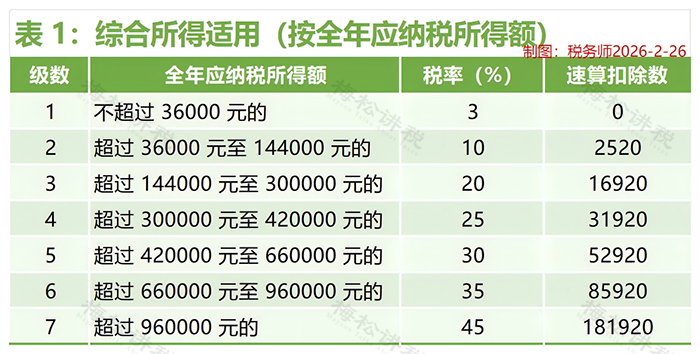②工资部分:360000-60000-70000=230000元,→ 匹配表1第3档(20%)