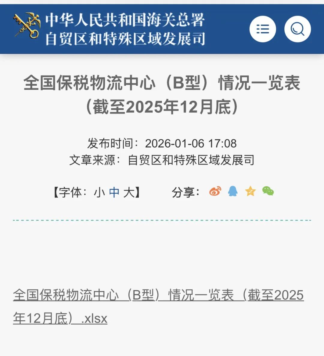 保税物流中心(B型)情况一览表(截至2026年4月10全国名单)(共101个)