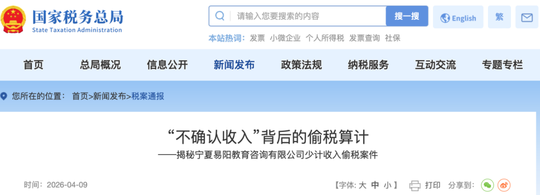 三、国家税务总局银川市税务局第一稽查局依法查处宁夏易阳教育咨询有限公司少计收入偷税案件
