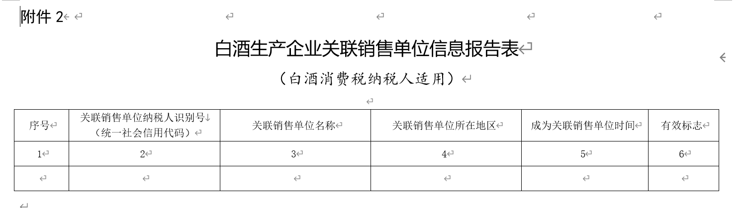 一、本表由存在关联销售单位的白酒生产企业填报,首次需填写企业当期所有关联销售单位情况,后续关联销售单位信息发生变化的,应在发生变化的下一个纳税申报期对本表信息进行调整。