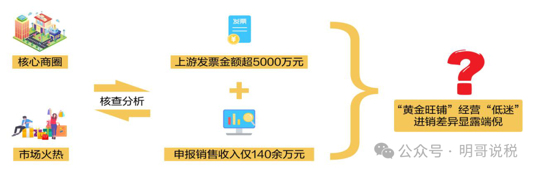 检查人员依托税收大数据分析,比对该珠宝店的发票数据和自行申报信息,发现其2022年至2024年共计接收上游两家公司金银珠宝首饰发票685份,发票金额合计8100.56万元,但同期申报的增值税应税收入仅467.35万元,消费税应税收入463.86万元。八千多万的进货成本,却只申报了不到五百万的销售收入,有违经营常理。