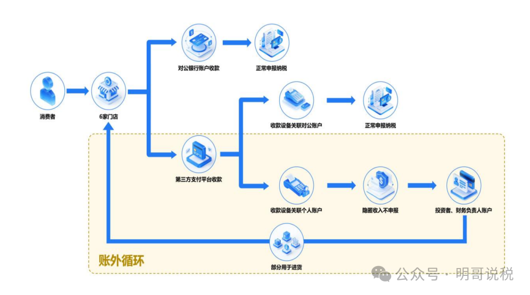 在无法辩驳的证据链前,王兵承认利用第三方支付平台对销售资金进行“公私分流”,将大额收入转入公司员工账户隐匿销售收入,同时还通过将门店销售收入导入总公司及个人账户,从而在分公司层面进行“低申报”,以达到少缴税款的目的。