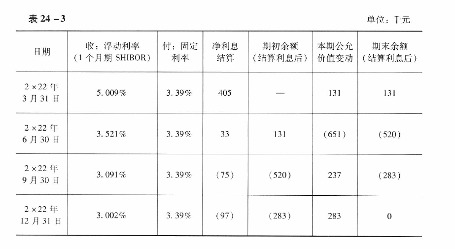 [例24-36]甲银行向乙公司提供了一笔1亿元的5年期孚动利率贷款。甲银行管理该贷款的业务模式以收取合同现金流量为目标,且合同现金流量特征仅为对本全和以未偿付本全全额为基础的利息的支付,因此以摊余成本计量。甲银行的信用风险政策要求针对整个贷款存续期内的全部信用风险进行风险管理。甲银行使用的风险管理工具为信用违约互换合同。