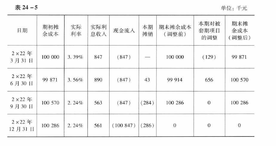 [例24 -37]甲保险公司于2 x21年5月购入3年期乙公司债券,并对该债券以摊余成本计量。为管理债券价格下跌的风险,甲公司于2X21年5月同时购入了以该债券为标的的3年期看跌期权,并将上述看跌期权的内在价值指定为套期工具,对该债券的公允价值变动风险进行套期。甲保险公司自2x23年1月1日起实施套期会计准则。由于该套期关系在甲公司2x23年度财务报表的最早比较期间的期初(即2 x22年1月1日)已经存在,因此,甲公司应当根据本章对期权时间价值的会计处理要求予以追朔调整,即将上述期权时间价值的公允价值变动中与被套期项目相关的部分先计入其他综合收益,再按照本章要求摊销至各期损益。