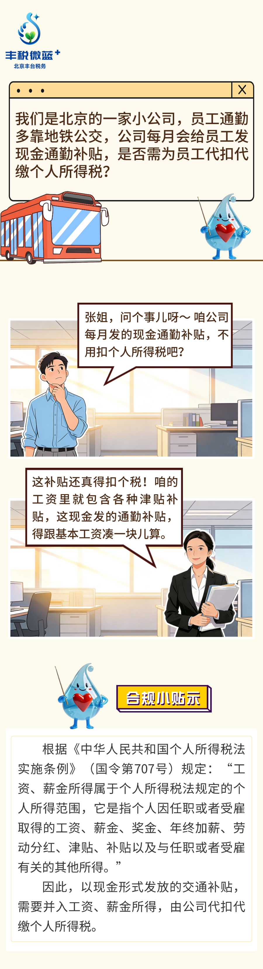 我们是北京的一家小公司,员工通勤多靠地铁公交,公司每月会给员工发现金通勤补贴,是否需为员工代扣代缴个人所得税?